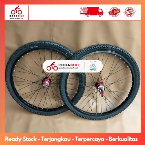 Wheelset Sepeda 26 Hub Alloy Pacific Drat DISCBRAKE Cakram Ulir As Quick Release Set Ban Luar Dalam