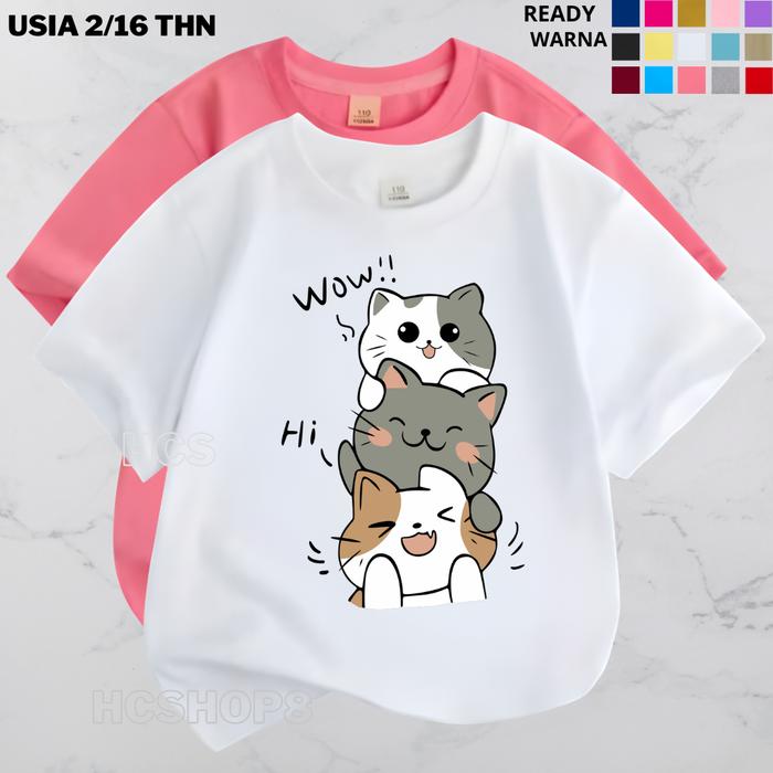 Kaos Anak Laki Laki Perempuan Kucing K3 Usia 2-16 Tahun Unisex Cowok Cewek Cotton Katun - Maroon, S 2-3Th