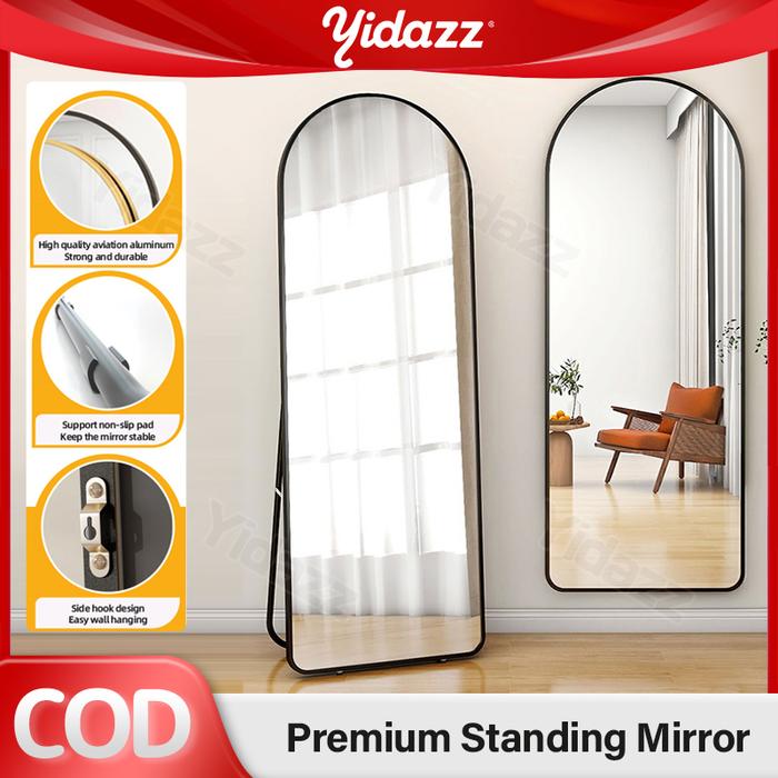 【Kemasan Kayu】Standing Mirror Premium Standing Mirror Aesthetic Full Body Frameless Oval 150/16040/50Cm Cermin Tubuh Ka