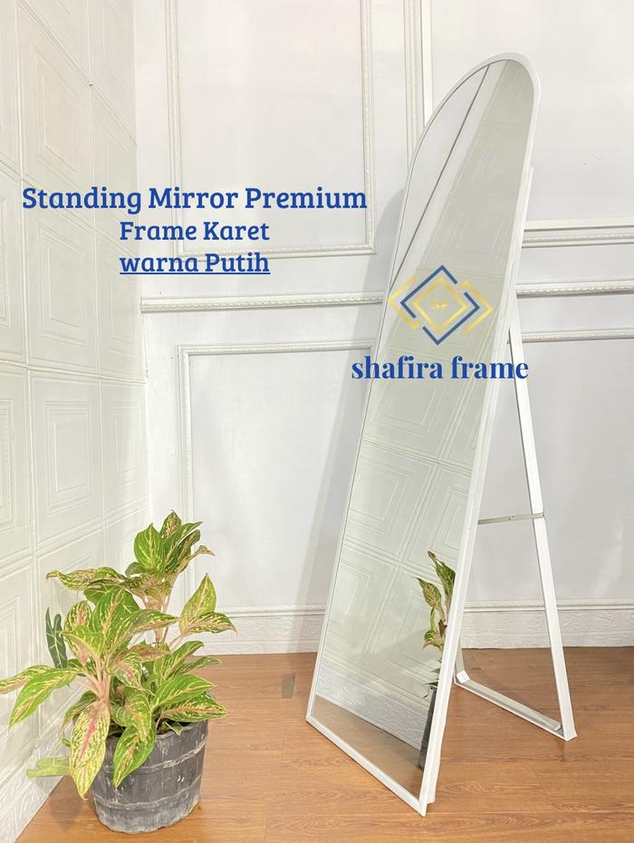 [Kemasan Kayu]Shafira Frame Cermin Aesthetic Standing Mirror Full Body Frameless Karet Premium Warna Putih Dengan Lapisa