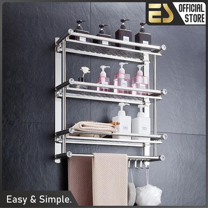 [Spesial ] Es Rak Kamar Mandi Tempat Sabun Rak Shampoo Stainless Steel Hitam S1Lverr Modern Aesthetic Anti Air Anti Kara