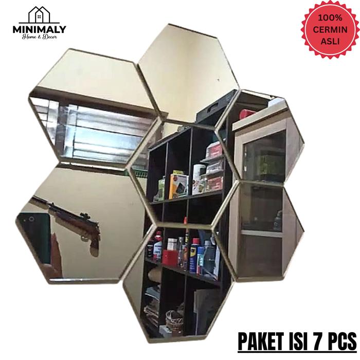 (Paket Hemat Isi 7 Pcs) Cermin Hexagonal (Ukuran 16X14 Cermin Asli) Kaca Dinding Cermin Aesthteic Cermin Tempel - 7 Pcs