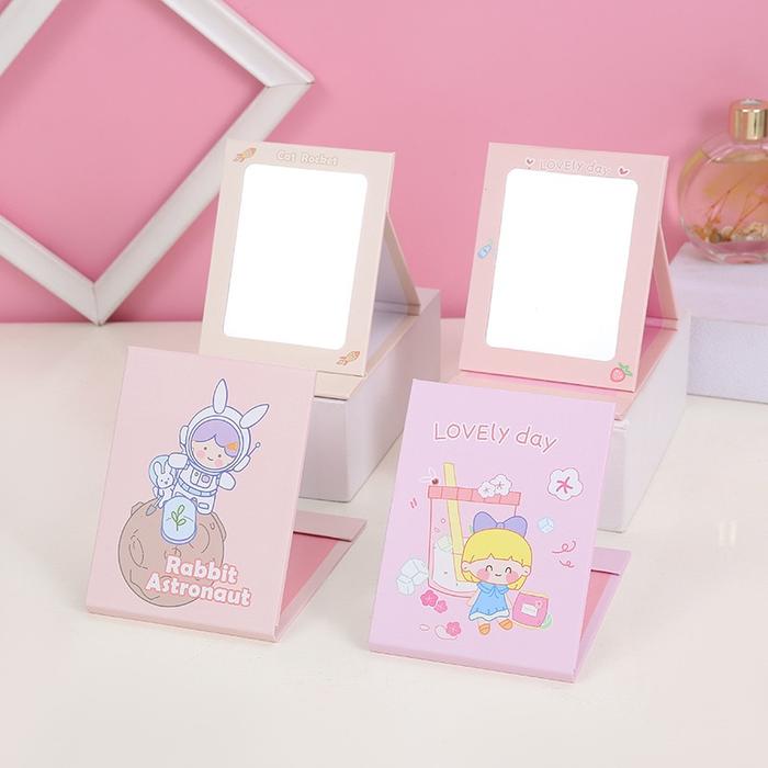 Cermin Rias Model Notebook / Cermin Kaca Rias Lipat Sedang / Folding Mirror Portable / Cermin Lipat Model Buku - Pink, M