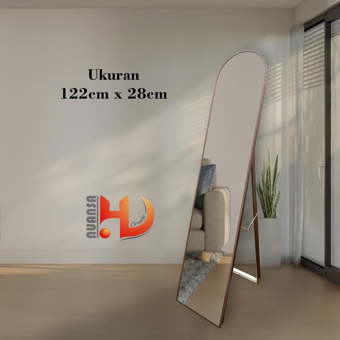 Cermin Oval Full Body - Standing Mirror - Cermin Berdiri -Cermin Aesthetic - Fullframe Putih, 122Cm X 28Cm