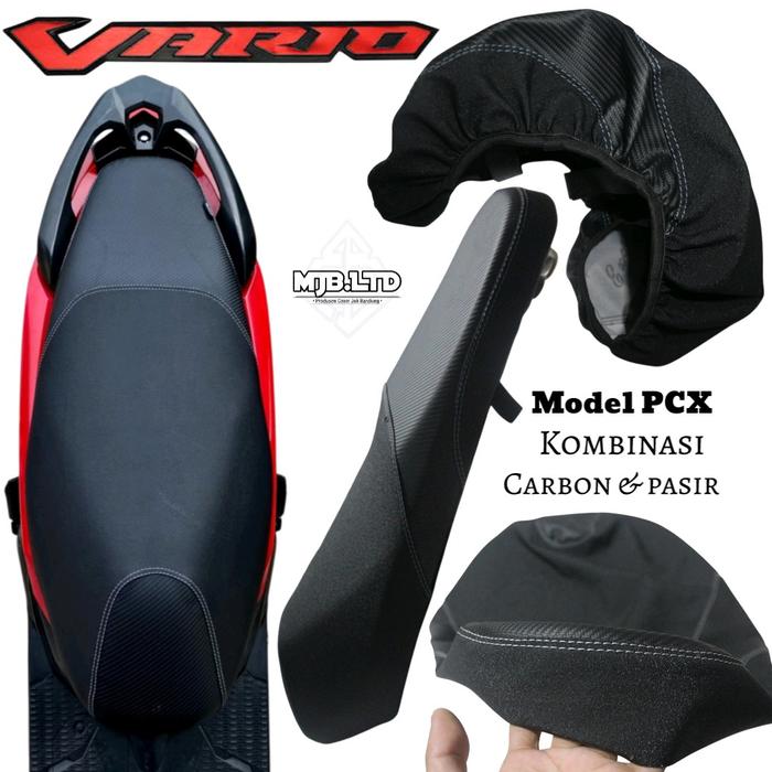 Sarung Jok Motor Vario 110-150 Model Pcx Motip Pasir × Karbon Belakang Bahan Import Standar - Dipasang Pakai Karet + Pre