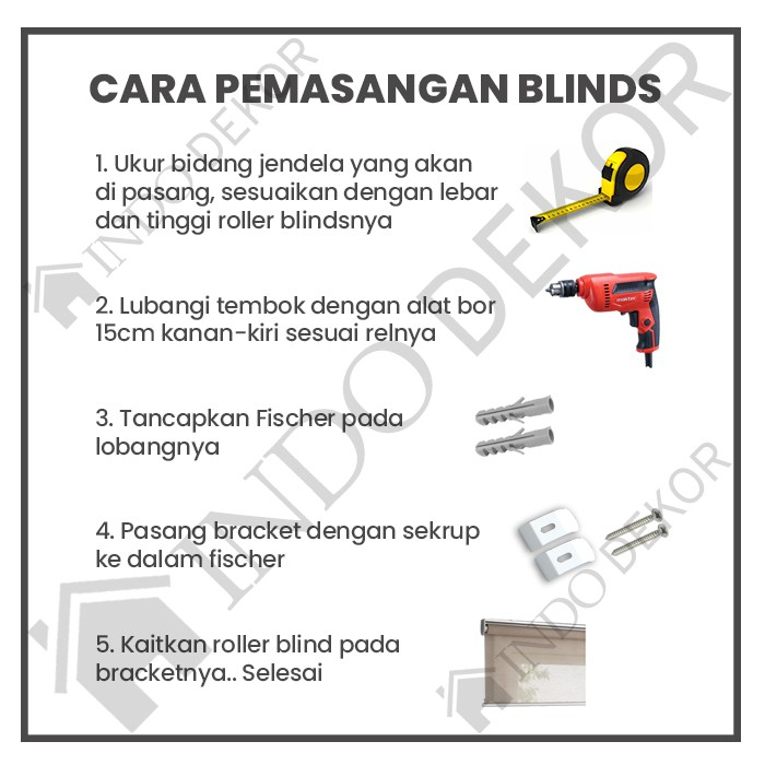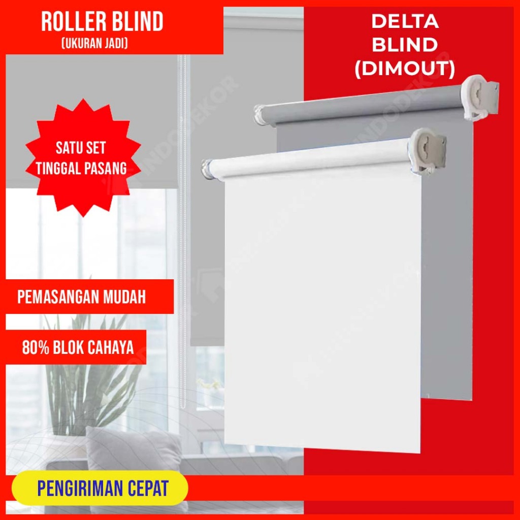 Roller Blind Dimout DELTA Ukuran Jadi - Tirai Gulung Jendela - Gorden Kamar Rumah Cafe