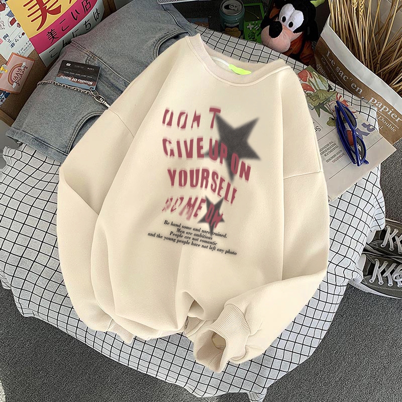 Forteid Sweater Lengan Panjang Oversize Street Style Korean Style/Switer Wanita Oversize (Bintang Bergaris Pola) Korean