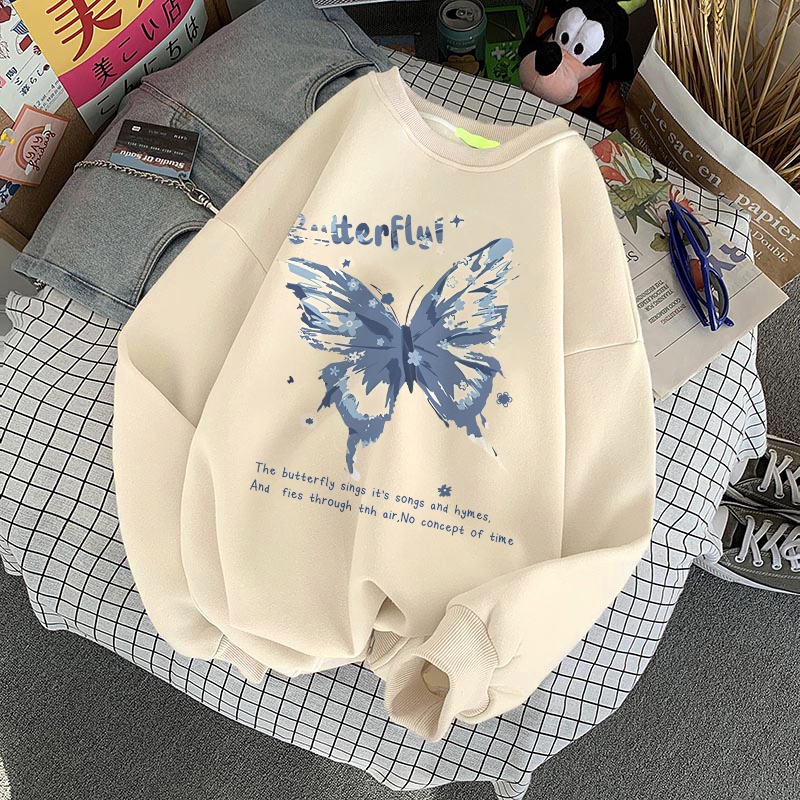 Forteid Sweater Lengan Panjang Oversized Street Style Korean Style/Switer Wanita Oversizecetakan Cetakan Kupu-Kupu Mode