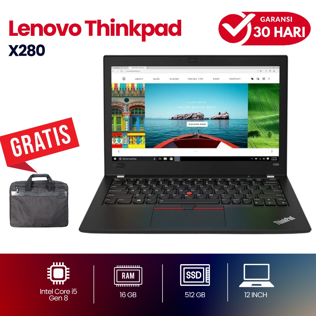 Lenovo Thinkpad x280 Core i5 Gen 8 Ram 16GB SSD 512GB - Laptop 12" Slim - Second Murah Bergaransi