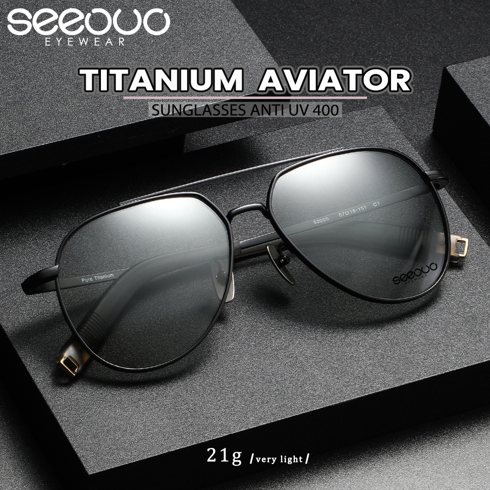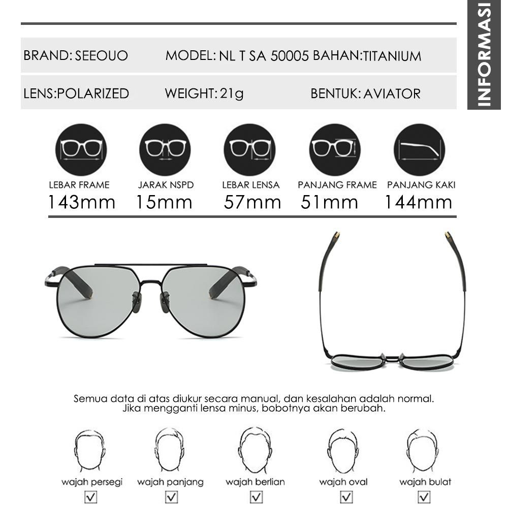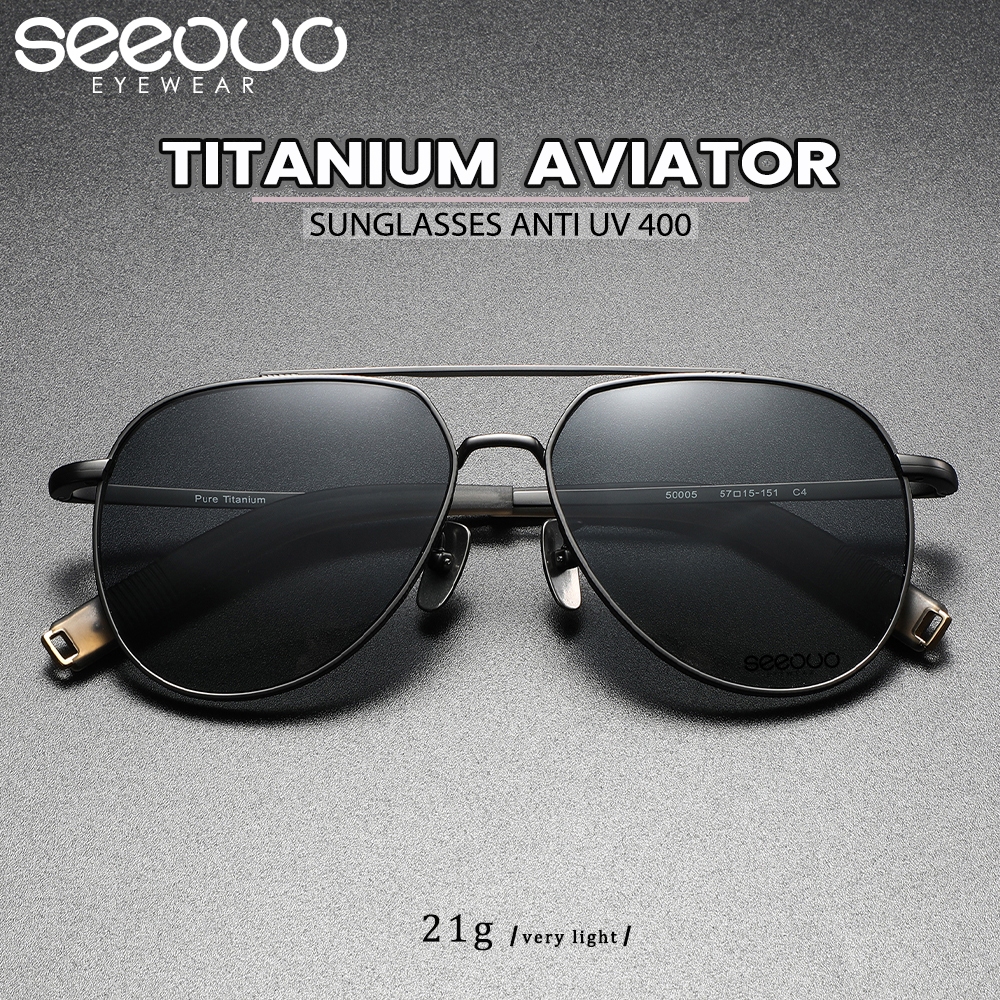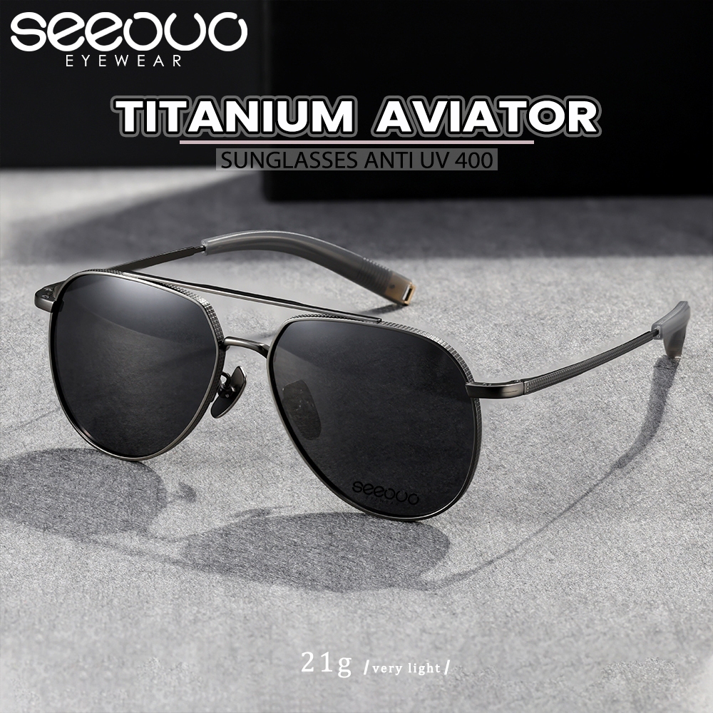 Seeouo Sunglasses Kacamata Hitam Model Aviator Keren Anti UV 400 Polarized Bahan Titanium Ringan Kokoh Fashion Uni 50