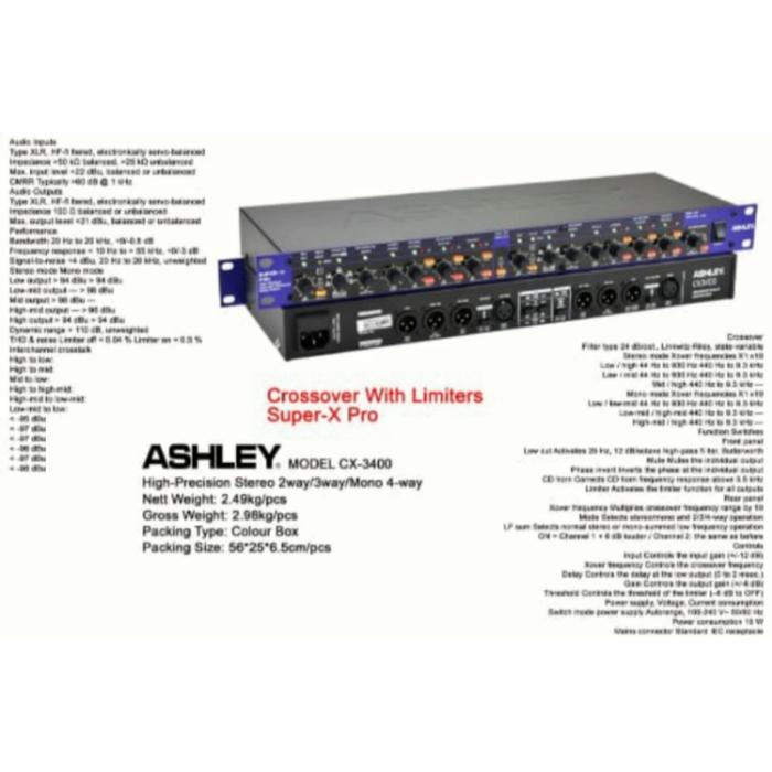 Crossover Aktif Ashley Cx 3400 Cx3400 Super Xpro Limiter Not Behringer Amplifier Metal - Ashley Cx3400