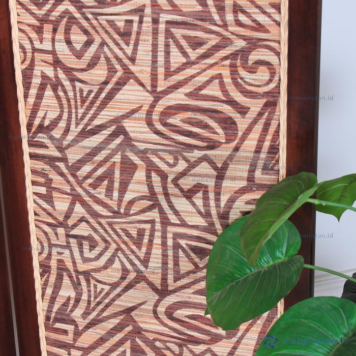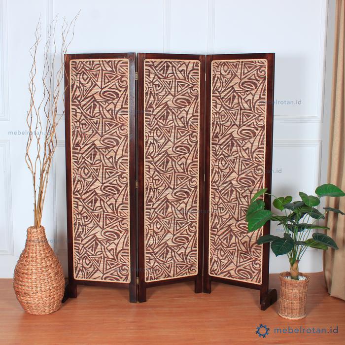 Penyekat / Partisi / Sketsel Ruangan Minimalis Kayu Full Batik 3 Daun - Natural