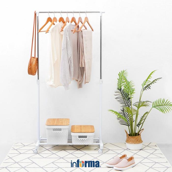 Informa 78.5X41.5X87-149.5 Cm Gantungan Pakaian Dengan Roda Tiang Baju Jemuran Pakaian Rak Gantung Stand Hanger Baju