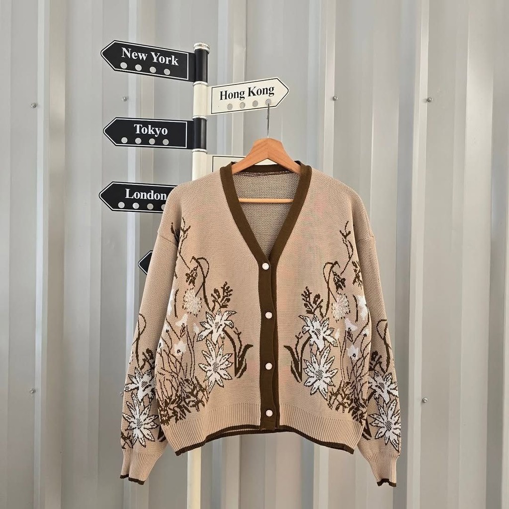 Verdalily Outer | Cardigan Rajut Wanita Motif Bunga, Model V-Neck, Kancing Depan, Casual & Elegan