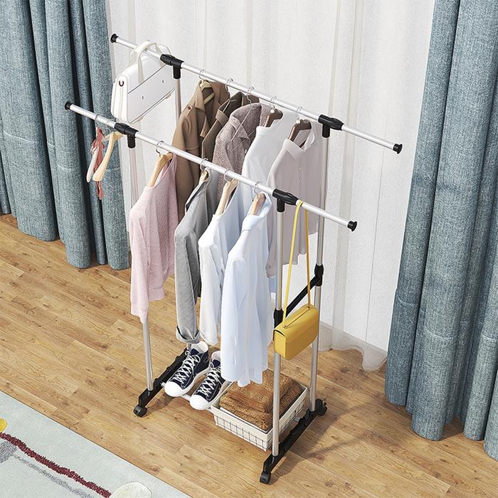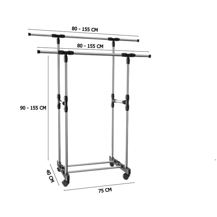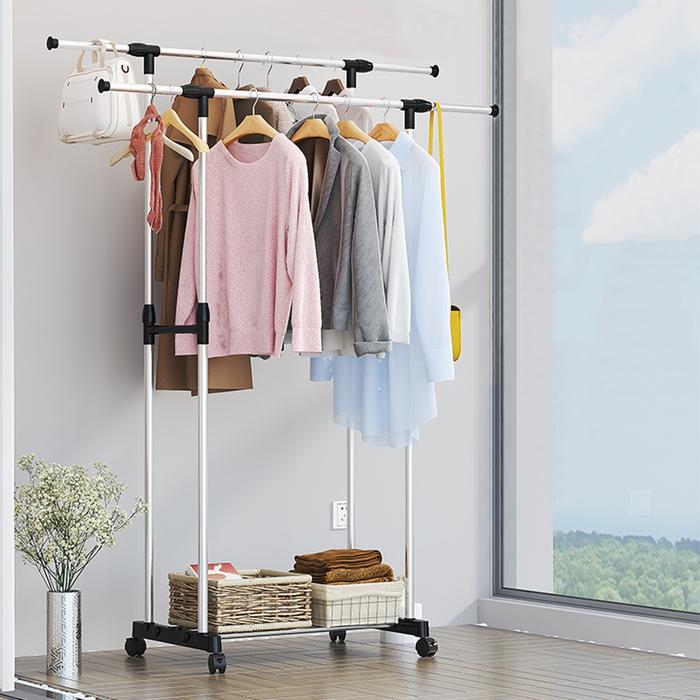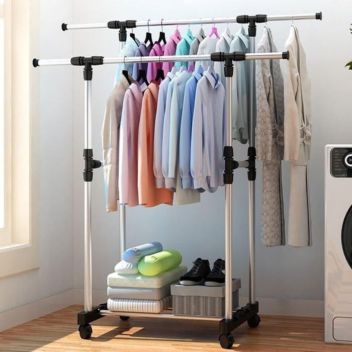 Stand Hanger Double Sisi Rak Handuk Sprei Dgn 4 Roda A689 - Putih