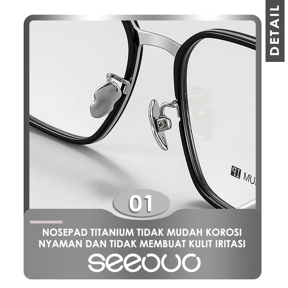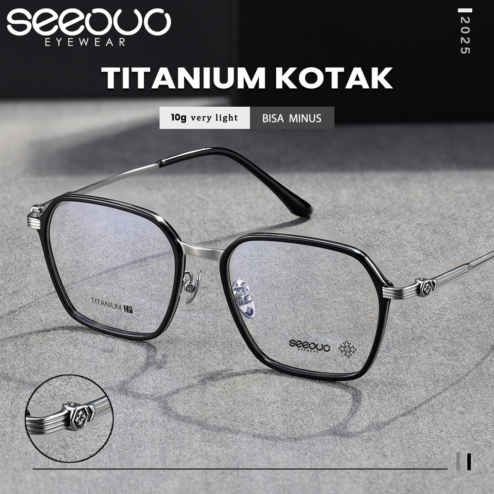 Seeouo Frame Kacamata Plano Lens Model Kotak Stylish Elegan Titanium IP Light Frame Fashion Bisa Minus 5512