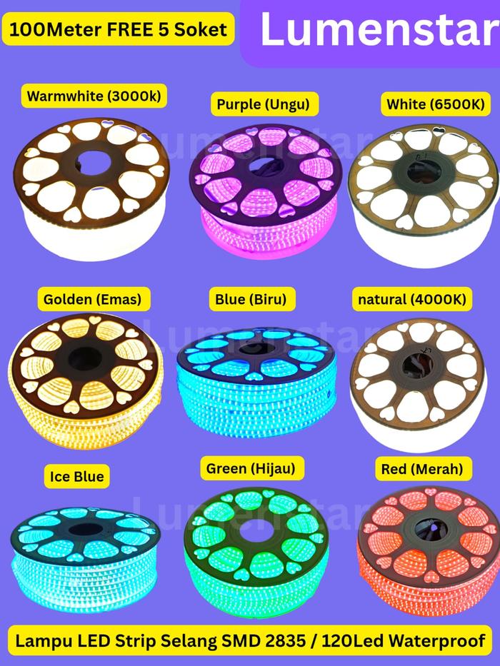 Lampu Led Strip Selang Smd 2835 120 Led 100M 100 Meter Free 5 Socket Waterproof Lampu Plafon Hias - 100M White (6500K)
