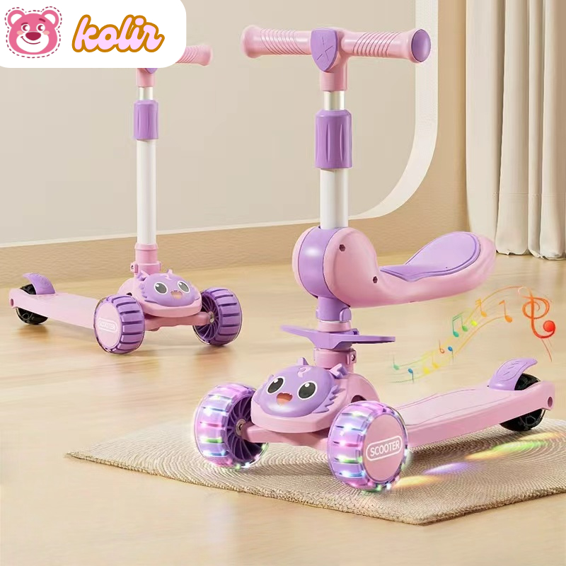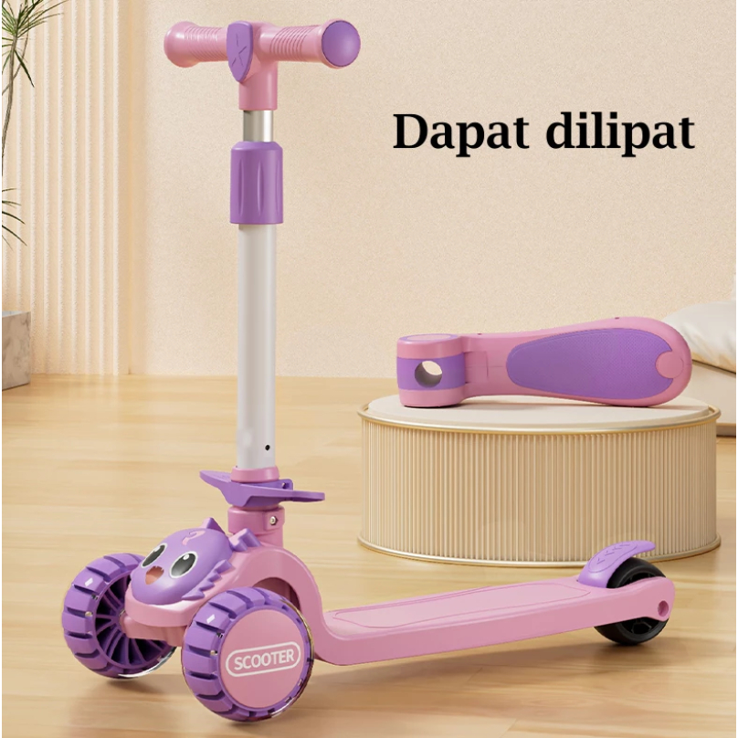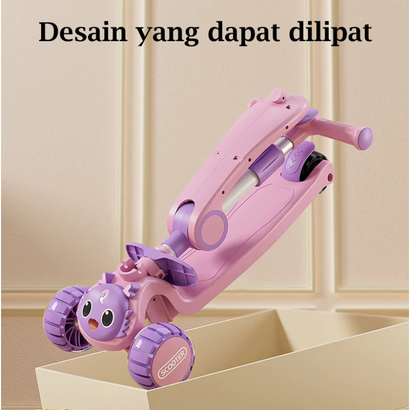 Scooter Anak Perempuan Skuter 2in1 Anak Roda 3 Lipat Aman 2-12 Tahun dengan Lampu Musik