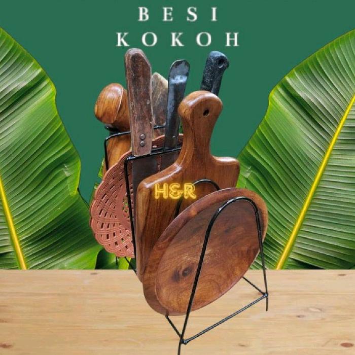 TEMPAT DAPUR COBEK BATU COBEK KAYU RAK PIRING TELENAN HOLDER BESI COBEK ALAT KNIFE KITCHENWARE DAPUR - HITAM