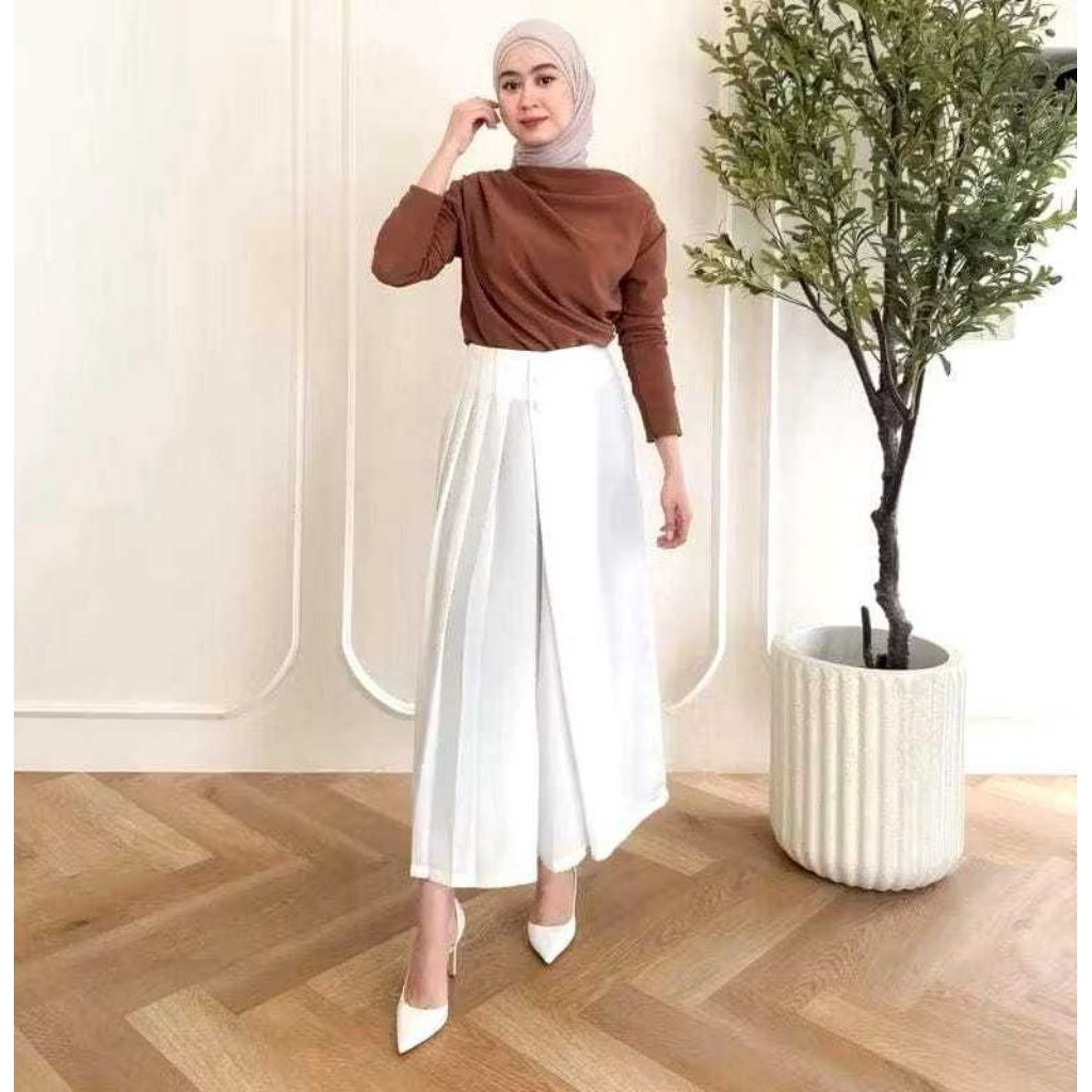 Celana Kulot Husna Kancing 2 |Rok Celana Wanita Highwaist Premium Korean Style