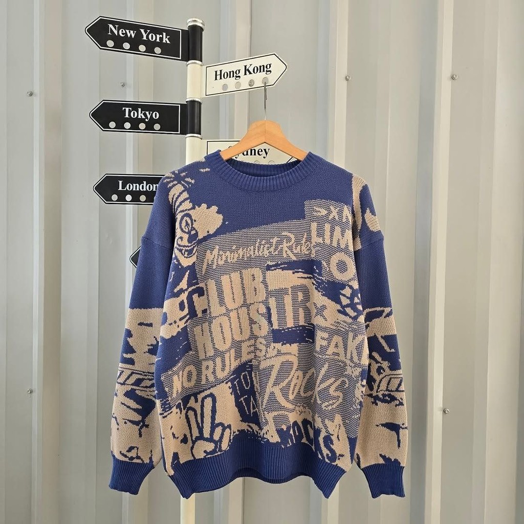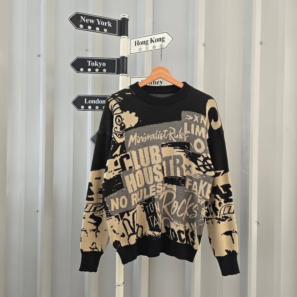 Arlina Urban Sweater | Sweater Rajut Wanita Motif Streetwear | Knit Pullover Korean Style