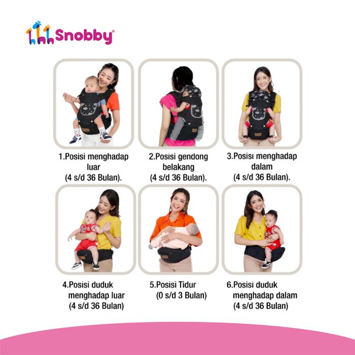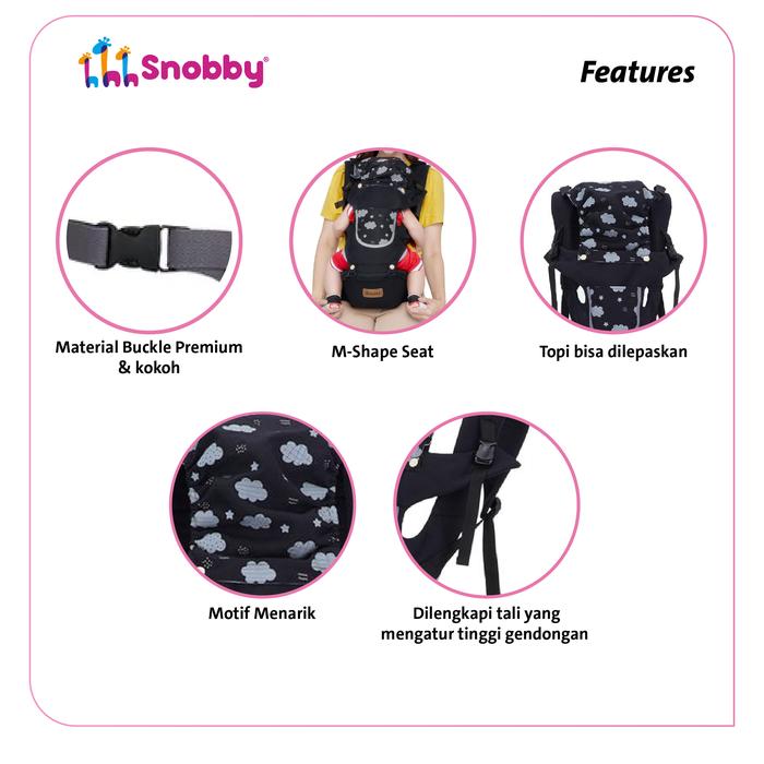 Snobby Gendongan Hipseat Bayi 6 Posisi Dan Saku Motif Megha Series Warna Hitam