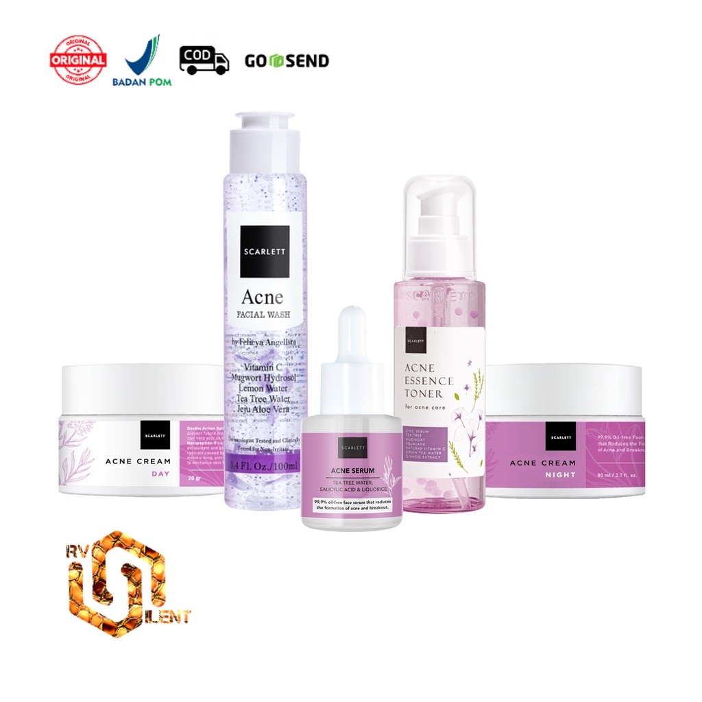 Paket Lengkap Complete Acne Series with Toner Scarlett Whitening Komplit Skincare Scarlet Scarllet Brightening Pencerah
