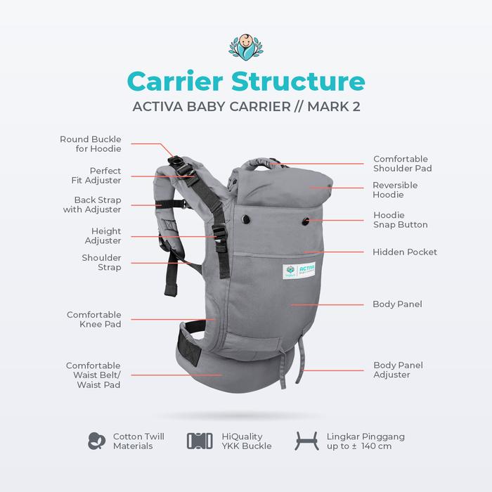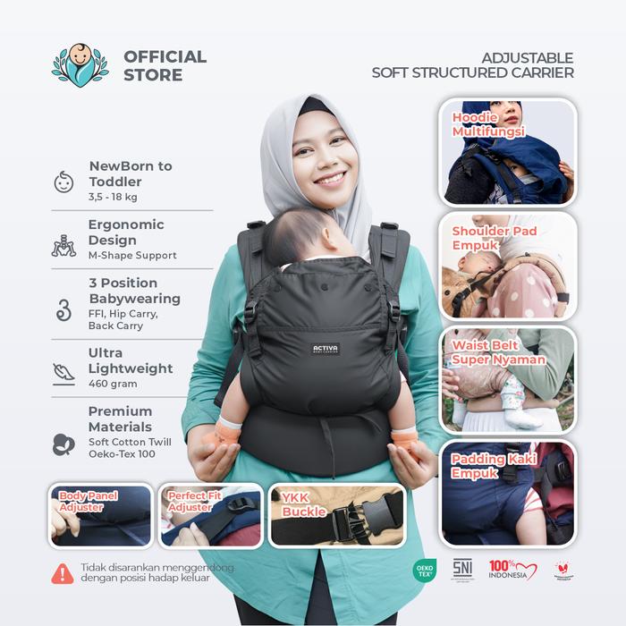 Bayiku.Id Activa Mark 2 Gendongan Bayi M-Shape Ssc Adjustable Newborn - Toddler 3 Thn Ringan Nyaman Tanpa Hipseat 3In1 P