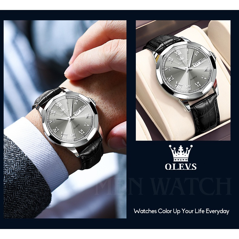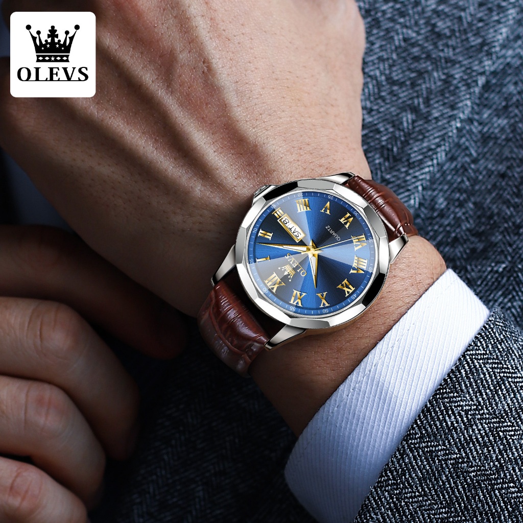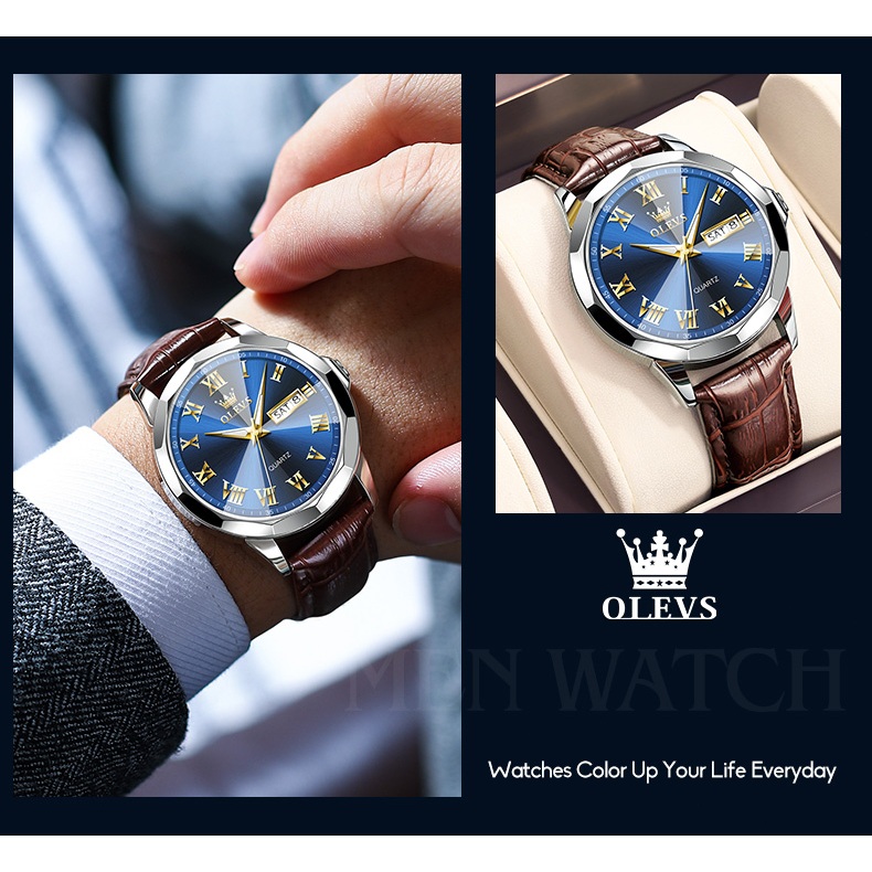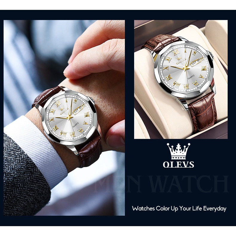 OLEVS Jam Tangan Pria Kulit Anti Air Original Analog Arloji Quartz Bisnis Fashion Men Watch 9990