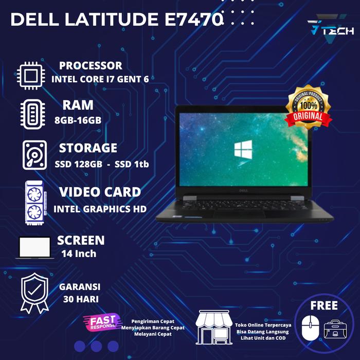 LAPTOP DELL LATITUDE E7470 INTEL CORE I7 RAM 32GB SSD 1TB MULUS - CORE I5, RAM 8 SSD 128