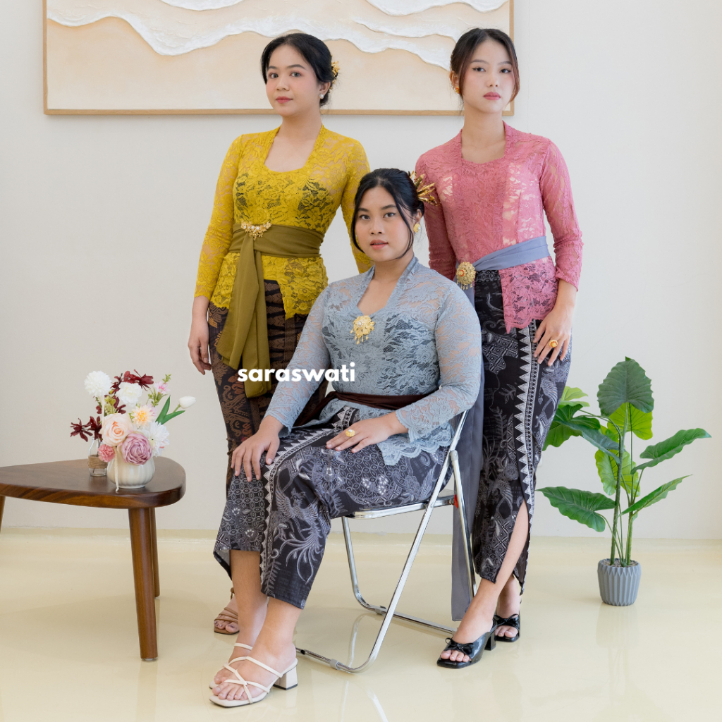 SATU SET KEBAYA Saraswati Kebaya Bali Brokat Premium Stretch Lengan Panjang | Kebaya Jumbo | Kebaya Big Size - Middy Set