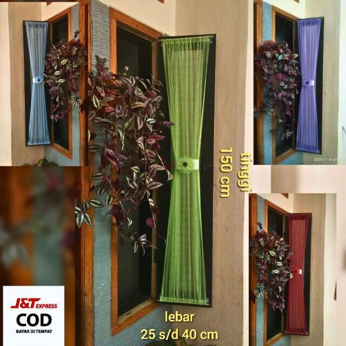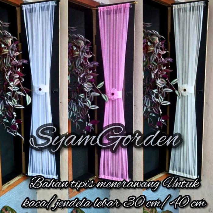 Hordeng Jendela Minimalis / Gorden Kupukupu Biru Putih Hijau Bunga Kain - Pink, Tinggi Jendela 150Cm