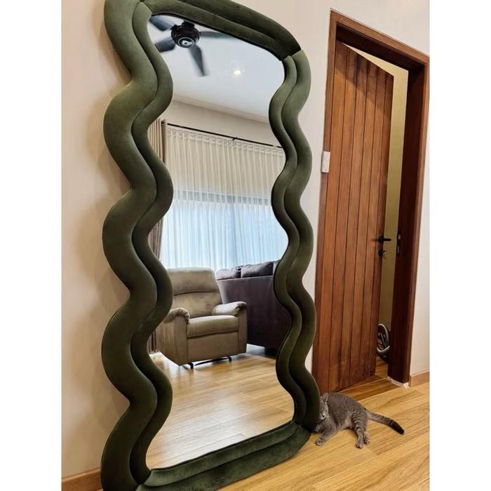 100Cmcermin Wave Cermin Aesthetic Dinding Kaca Fleksibel Vertikal White Coklat Rak St Iker Cermin Kolonial Aesthetic San