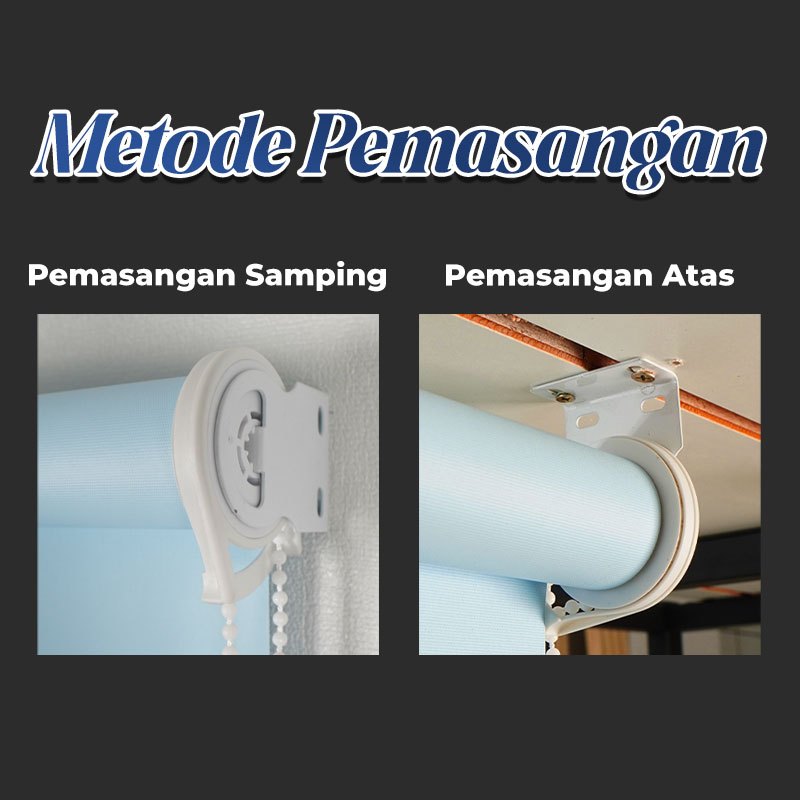 Ready Stock-Free Aksesoris-Roller Blind Tirai Gulung - Bahan Import Tahan Air & Anti Kusut, Pasang Sistem Bor, Blac