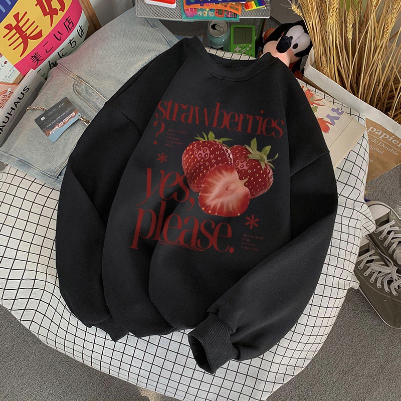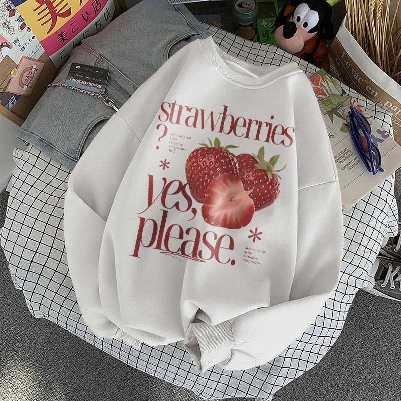 Forteid Sweater Lengan Panjang Oversized Street Style Korean Style/Switer Wanita Oversize Kaos Cetakan Strawberry Letter