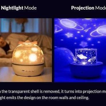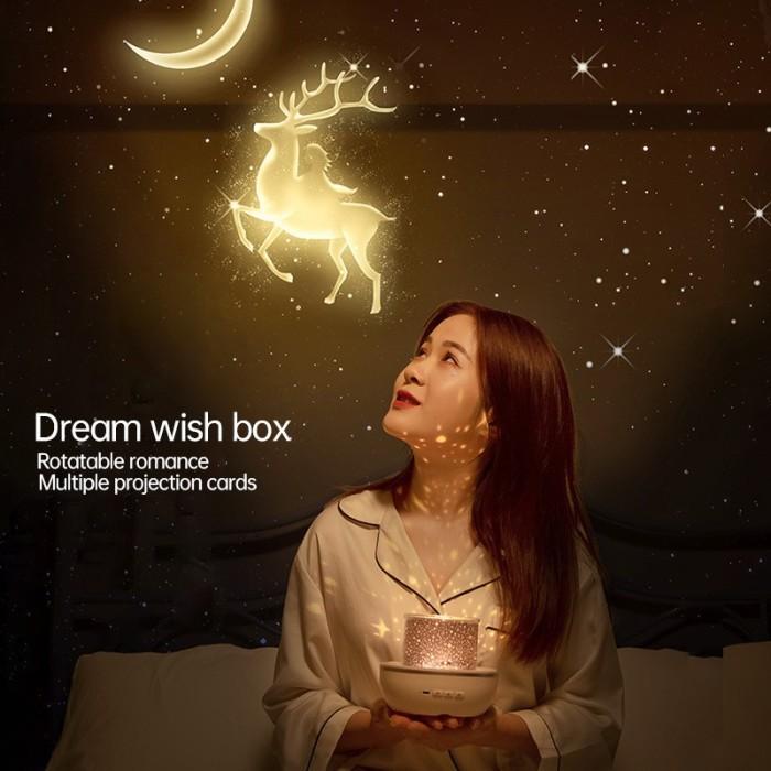 Lampu Tidur Proyektor Zp23 Langit Bulan Bintang Night Light Dengan Film Proyeksi 360° Bluetooth Speaker Rotasi Rechargea