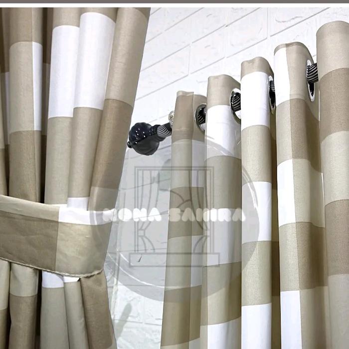 Gorden Pendek Jendela Smokringg Ring 10 Gorden Jendela Kamar Dan Jendela Tamu Kain Katun Curtain - Pendek Kotak Cream