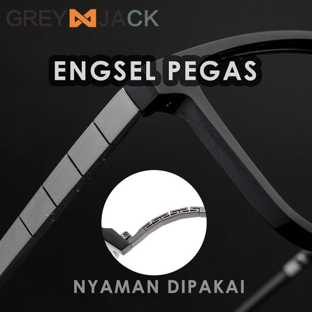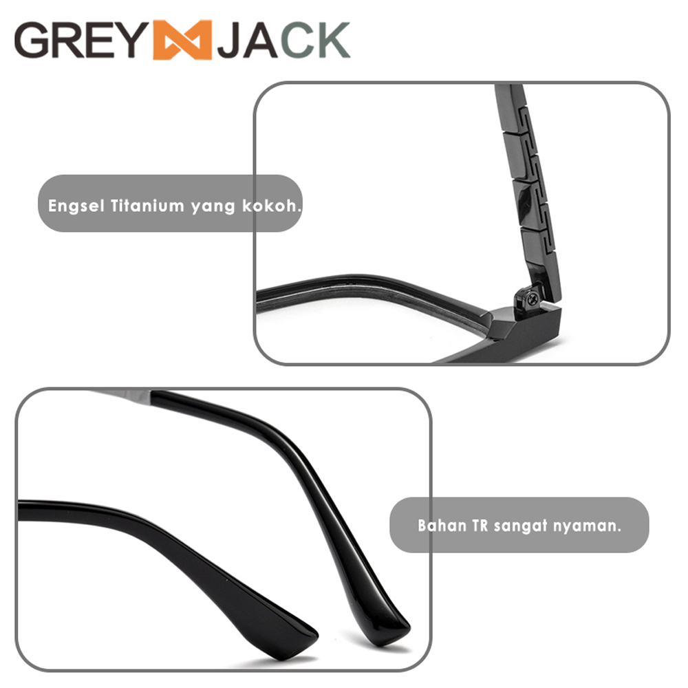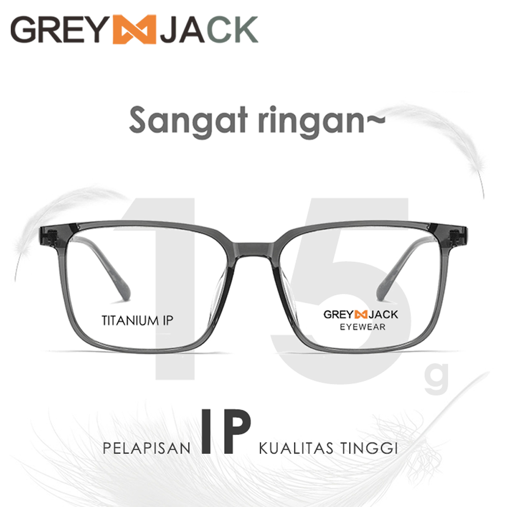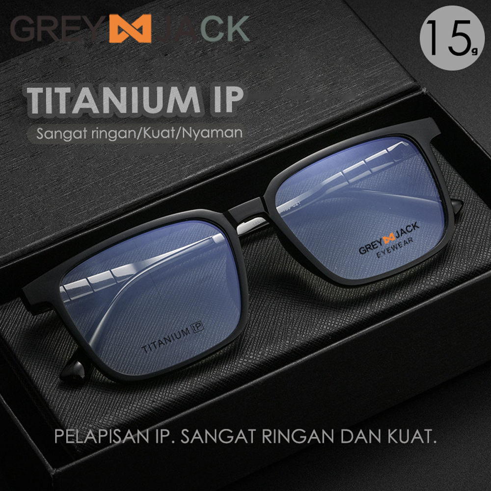 Grey Jack Frame Kacamata Bahan Titanium Ringan Kokoh Fashion Bisnis Model Kotak Bisa Lensa Minus Antiradiasi Blueray Pho