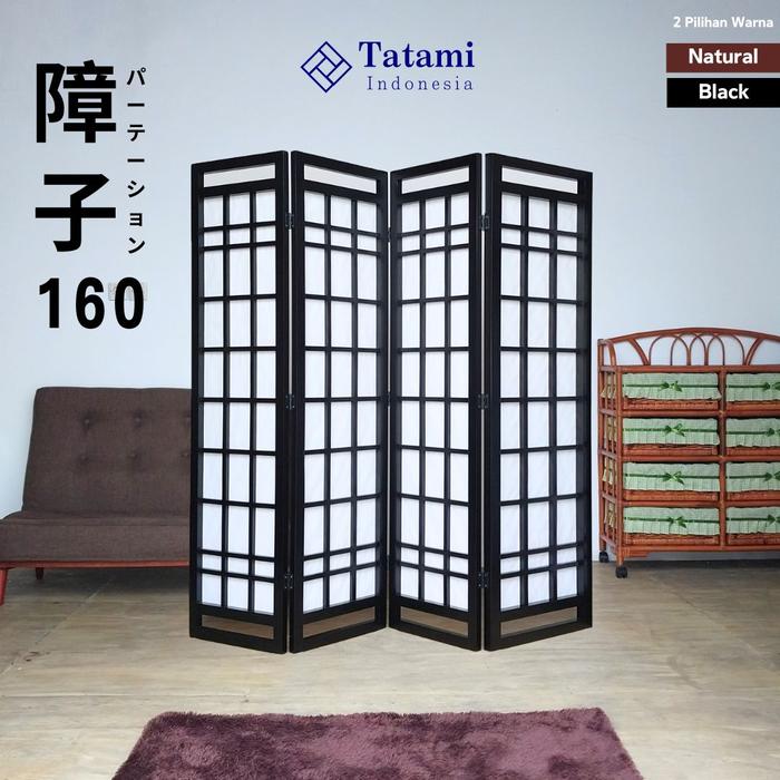 Shoji 160 - 4 Panel Handle Partisi Japanese Pembatas Ruangan Lipat Sekat Sketsel Kayu Furniture Minimalis Room Divider -