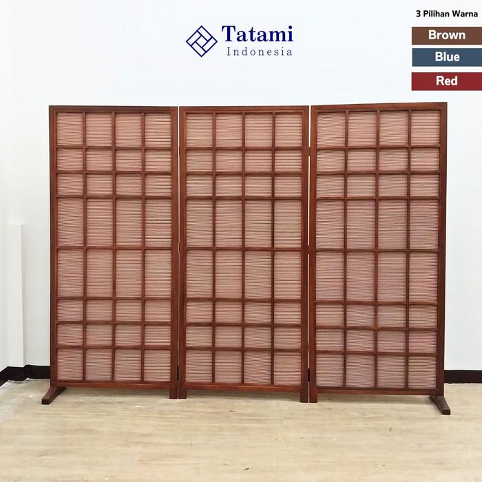 Igusa 70 - 3 Panel Partisi Sekat Partisi Sketsel Screen Furniture Kayu Pembatas Ruangan Room Divider - Dark Blue