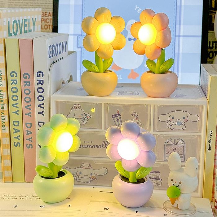 Bisa L6468 Lampu Tidur Mini Aesthetic / Aksesoris Kamar Tidur Model Bunga Baterai - Hijau