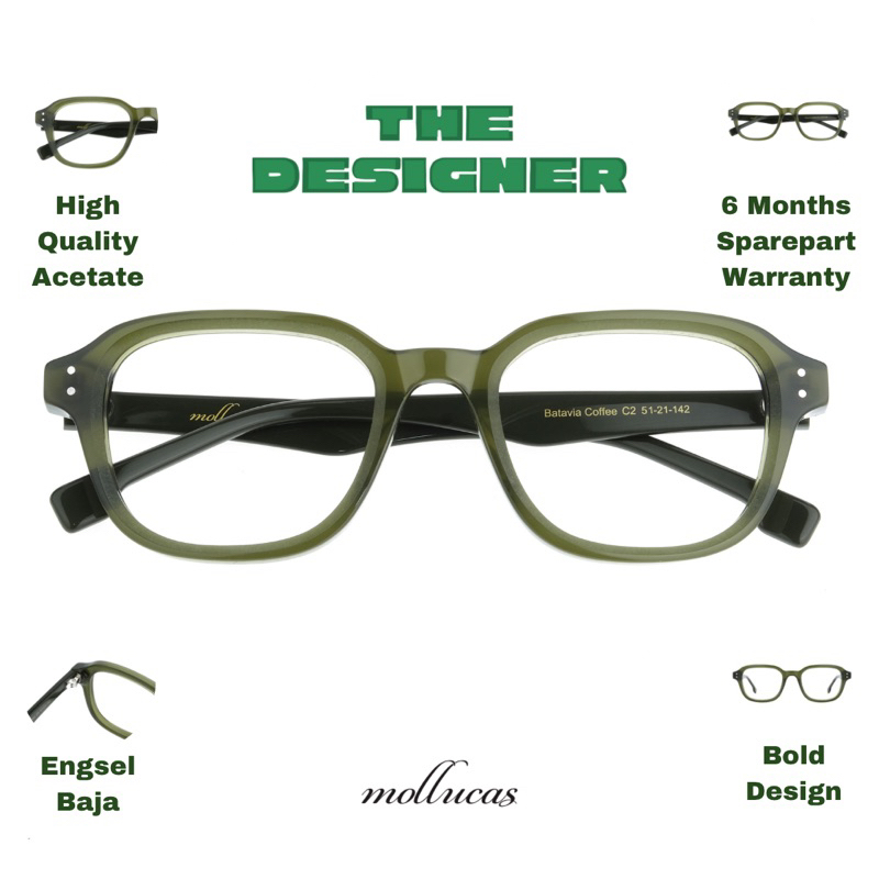 Mollucas - The Designer - Batavia Coffee - Gratis Lensa Minus/Plus/Silinder Anti Radiasi - Kacamata Pria/Wanita