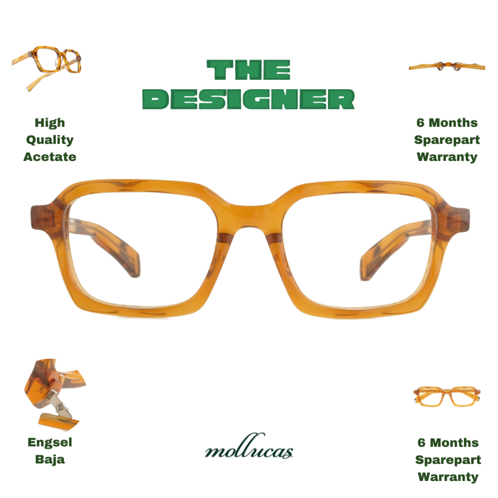 Mollucas - The Designer - Nias Pumpkin - Gratis Lensa Minus/Plus/Silinder Anti Radiasi - Kacamata Pria/Wanita