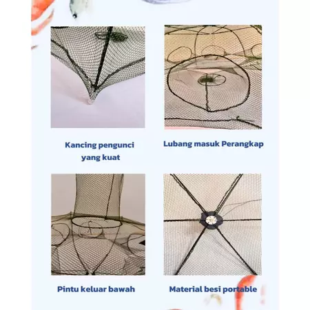 GRATIS ONGKIR Perangkap Bubu Payung 4-16 Lubang Alat Jaring Pancing Jala Ikan Udang Kepiting Lele Lobster Sungai Laut