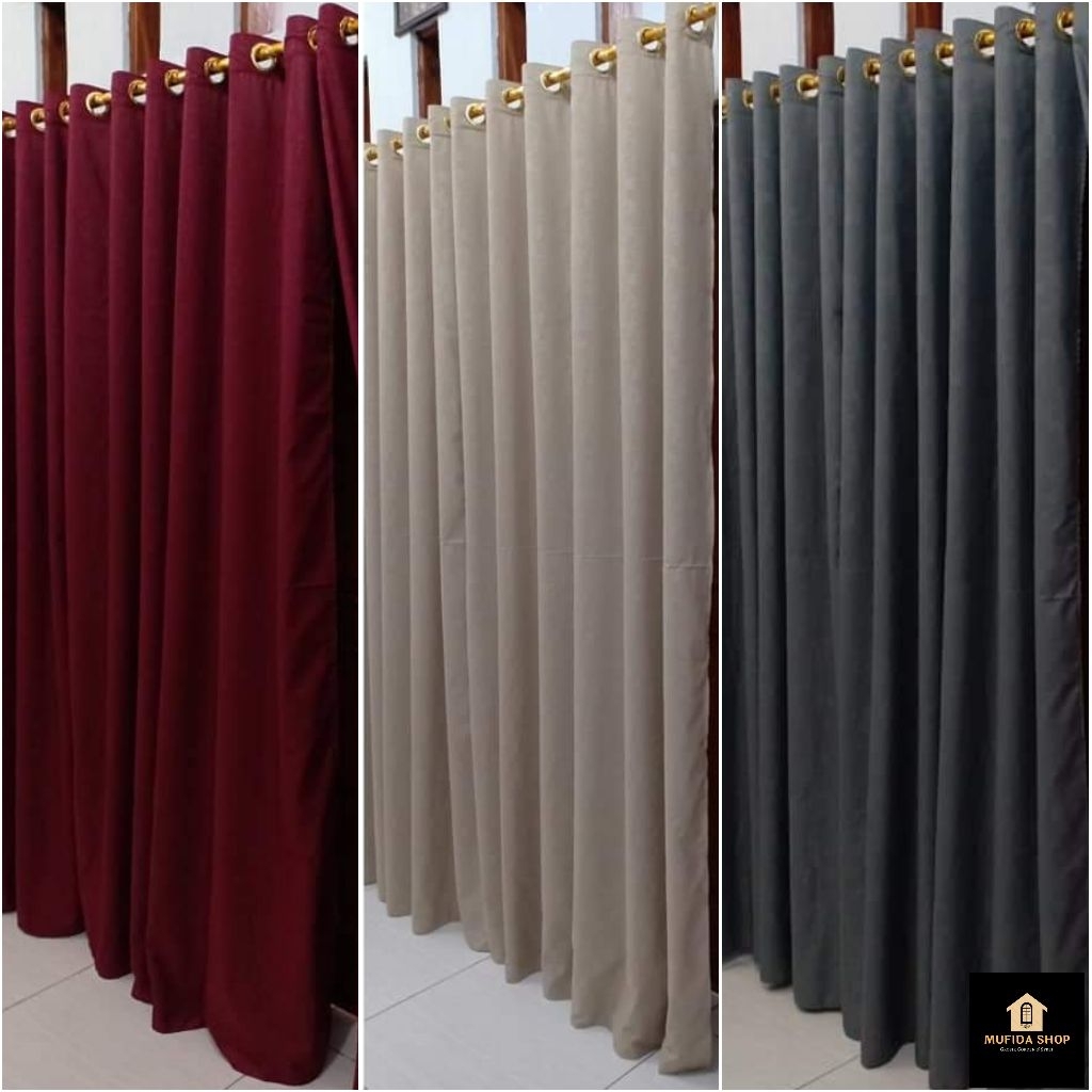 Tirai Pintu Gorden Jendela Polos Embos Smokring Abu Coklat Marun Krem