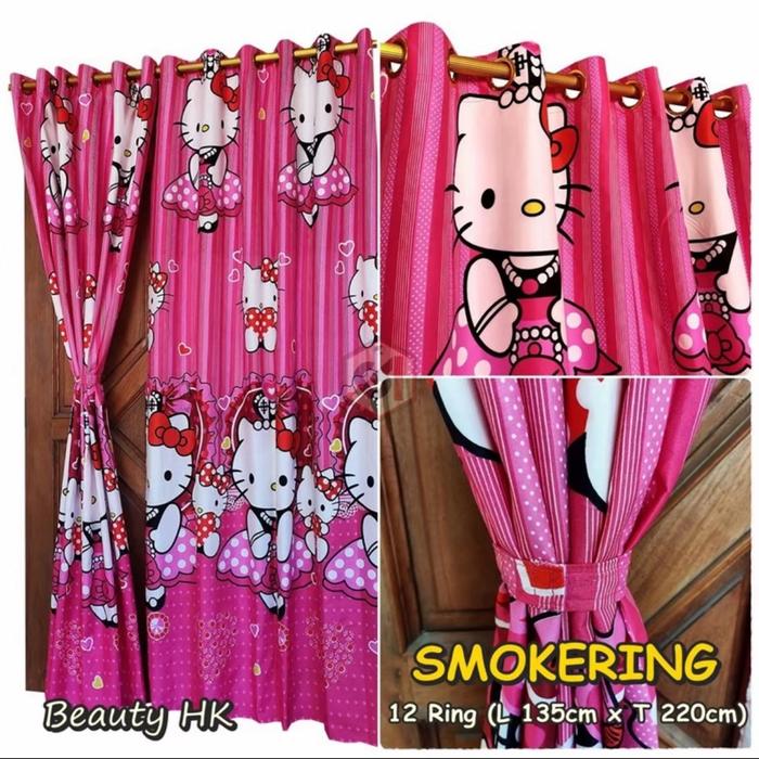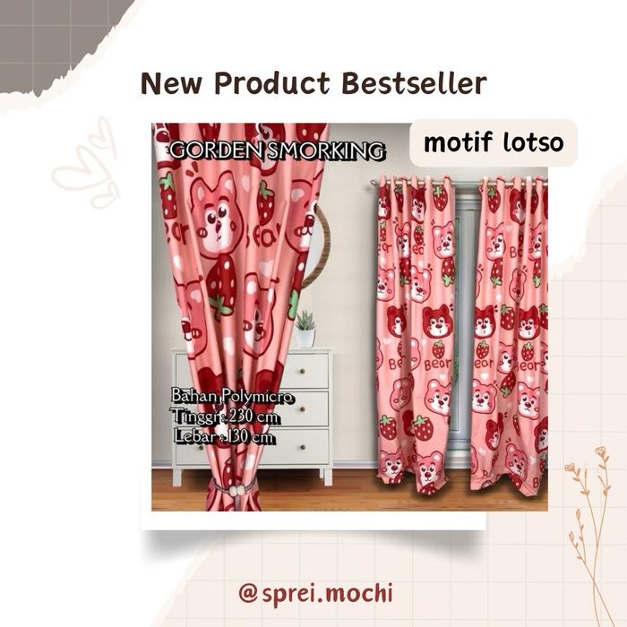 Gorden Motif Lotso Ukuran 135 X 220 Ring Katun Jendela - Pintu Minimalist Curtains - Mini Pink