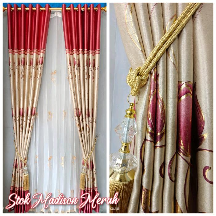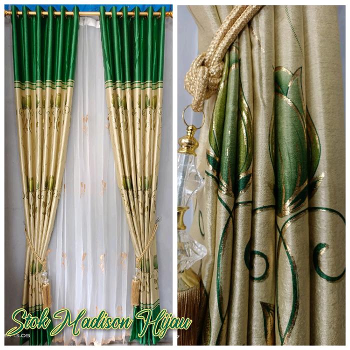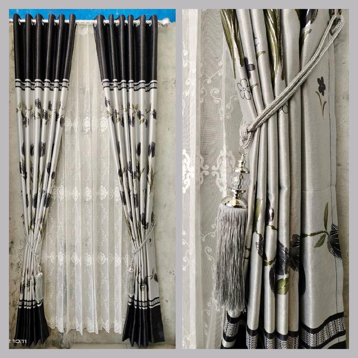 [1 Lembar]Gorden Horden Medison Bludru Motif Bunga Tulip(Jendela Dan Pintu) - Abu S1Lverr