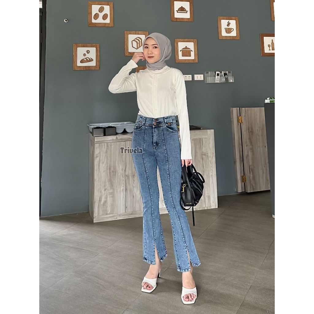 Loose Jeans Cutbray Front Line 27-38 L Celana Jeans Cutbray Loose Wanita Belah Anti Ngatung L Elsa Cutbray Jeans L Celan