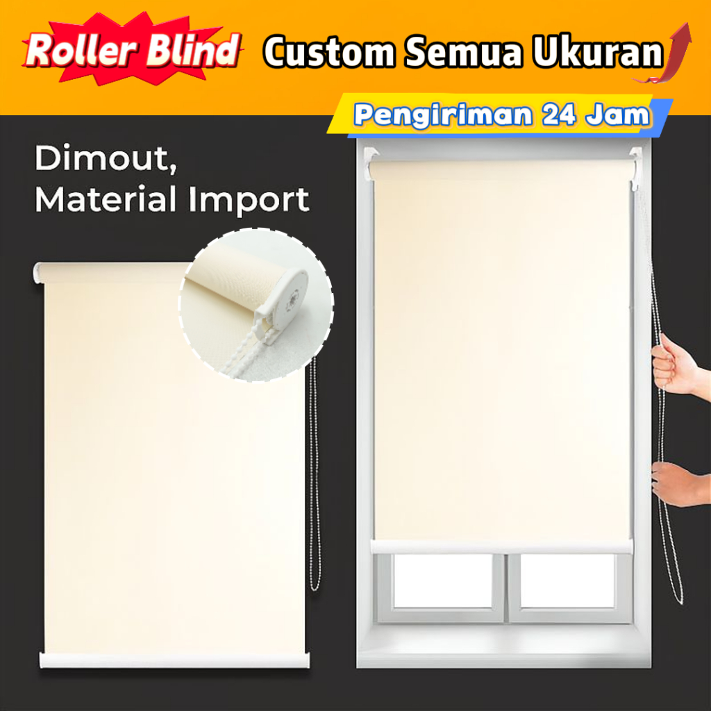 Ready Stock-Tirai Gulung Roller Blind Semi Blackout - Bahan Import Waterproof, Anti Kusut, Mudah Dibersihkan, Custo