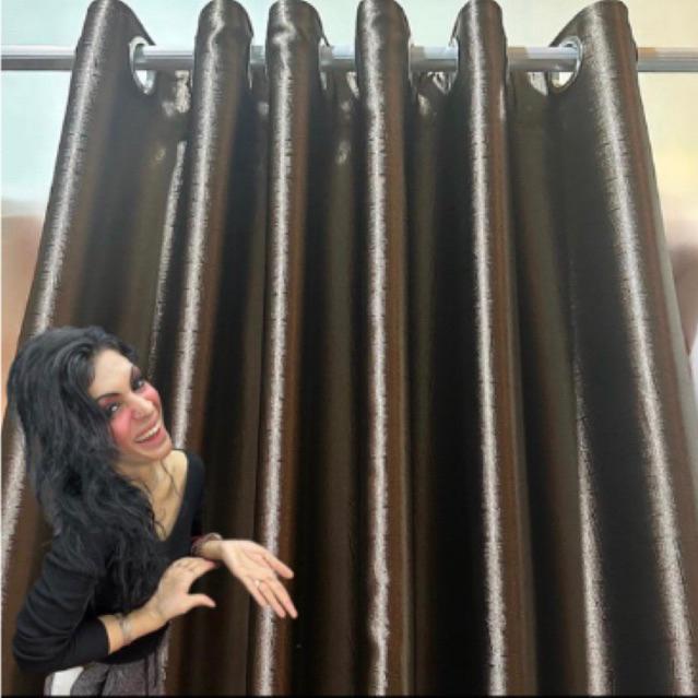 Gorden Blackout 85 PERSEN Coklat Tua Gelap Garis Kotak Kak Jill - 6 Gelombang
